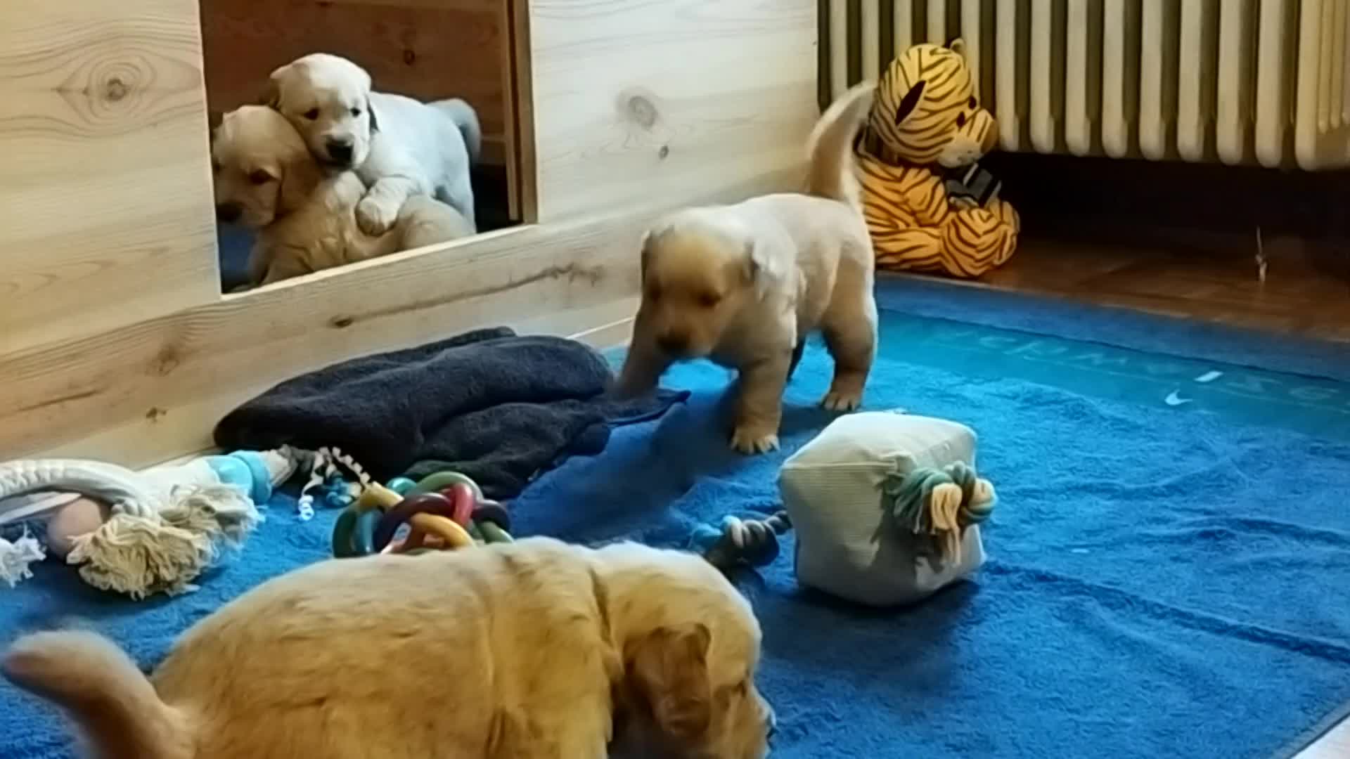 Ruby ist sehr verspielt, sie liebt Spaziergänge im Wald und Wiesen, fühlt sich wohl im Wasser und im Schnee. Sie ist eine ehrgeizige und gute Schwimmerin.